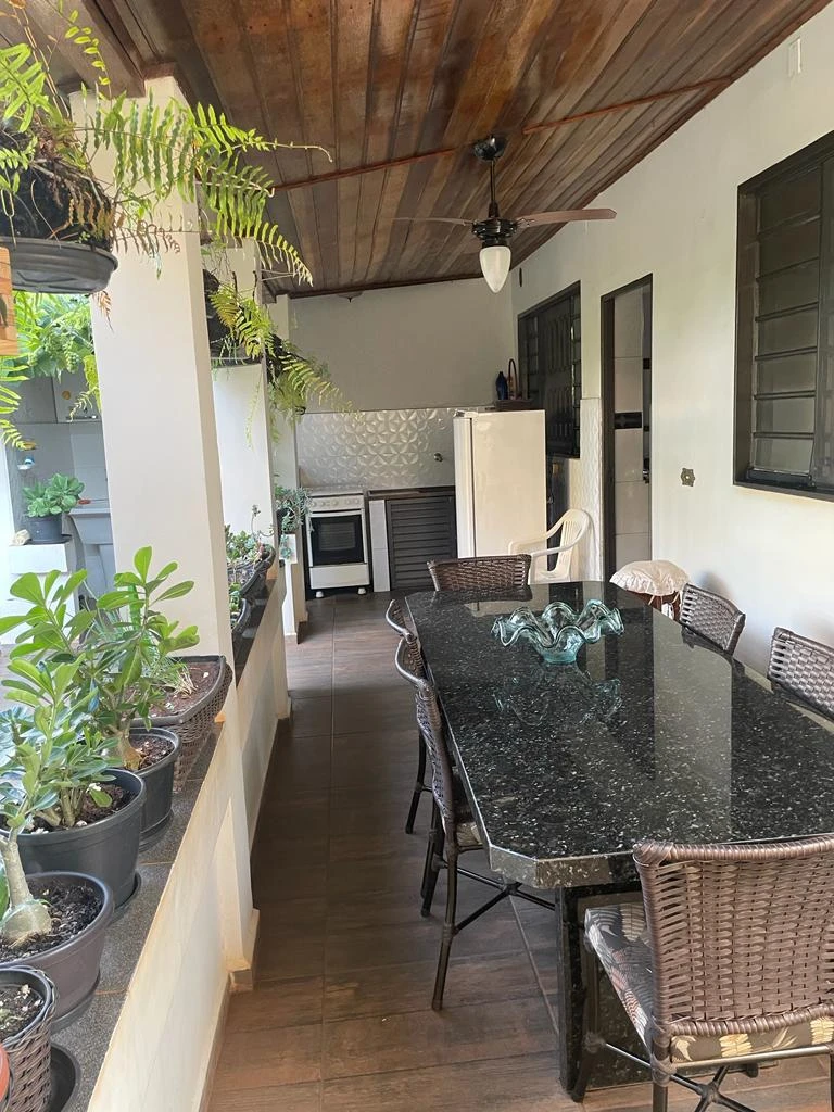 2 salas, 4 dormitórios, 2 banheiros sociais, sala de jantar, 2 cozinhas, banheiro externo, dispensa, area de churrasco e lavanderia.