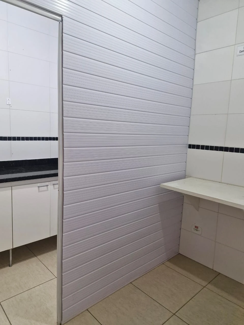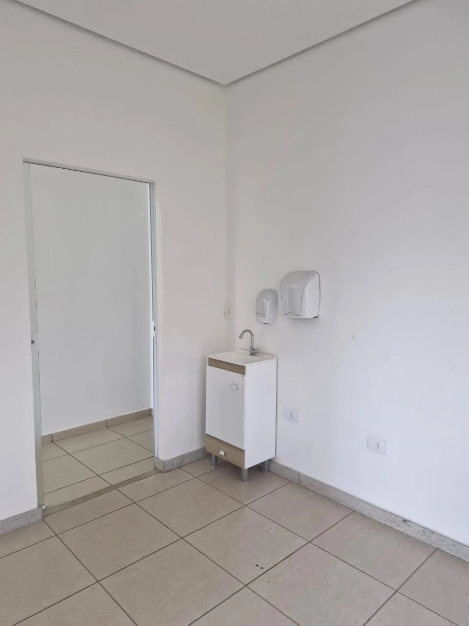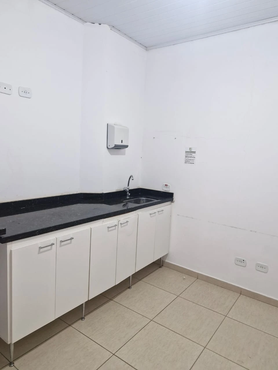 sala comercial com divisões internas feita em drywall, cozinha, 2 banheiros, 1 entrada de serviço e 2 entradas principais.