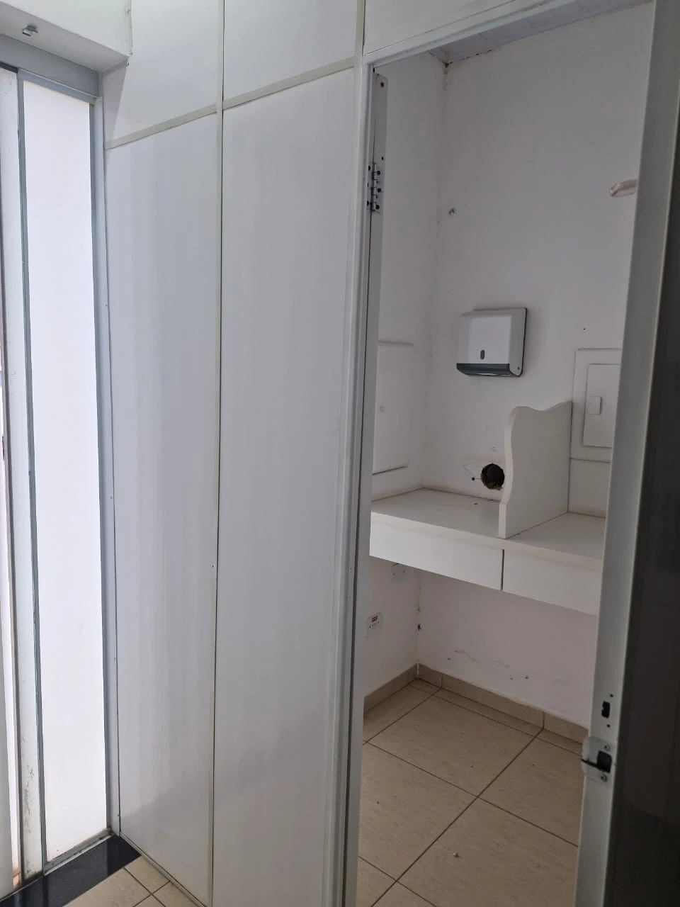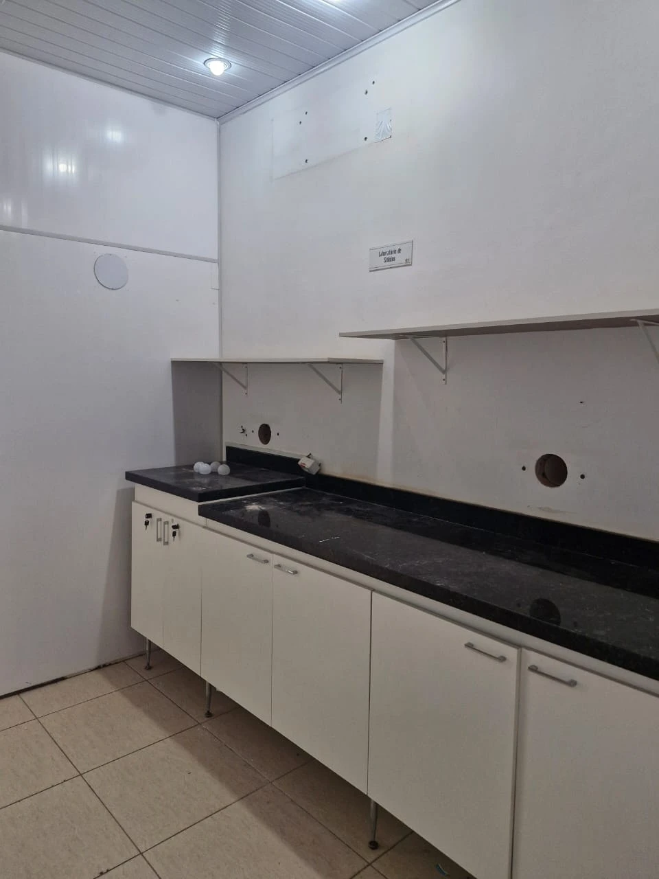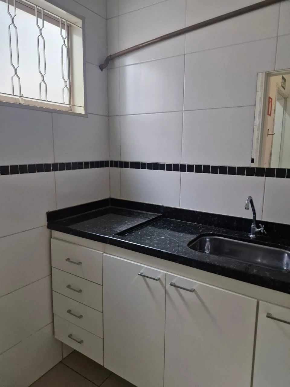 sala comercial com divisões internas feita em drywall, cozinha, 2 banheiros, 1 entrada de serviço e 2 entradas principais.